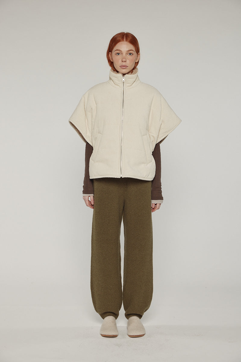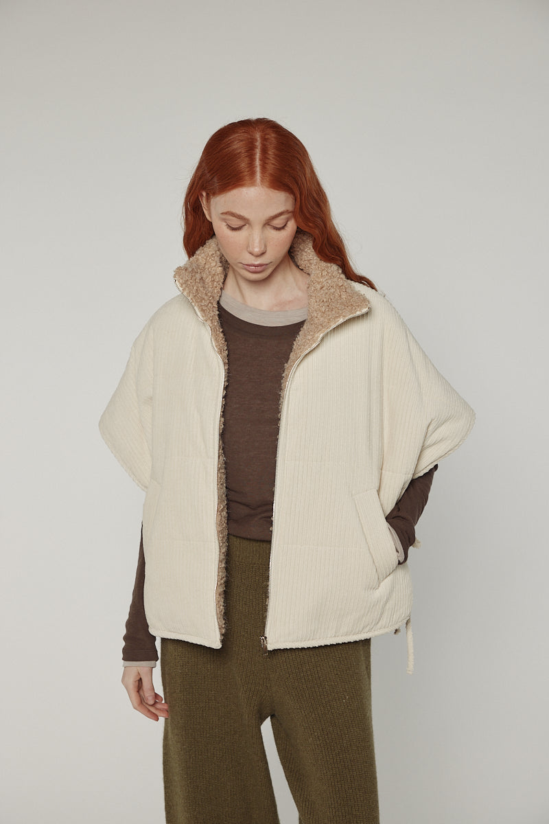 This vest is crafted from pure cotton, featuring a quilted corduroy side and a soft fleece reverse.