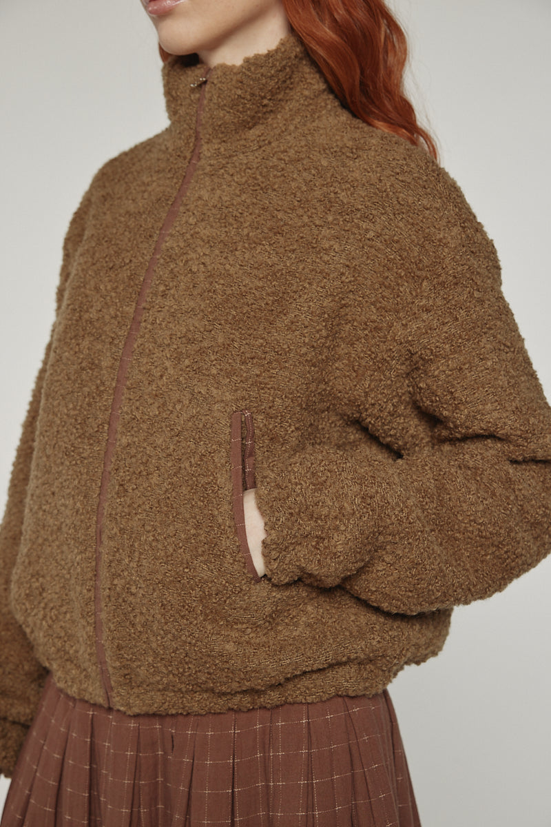 A cozy yet structured silhouette crafted from soft wool-blend boucle.