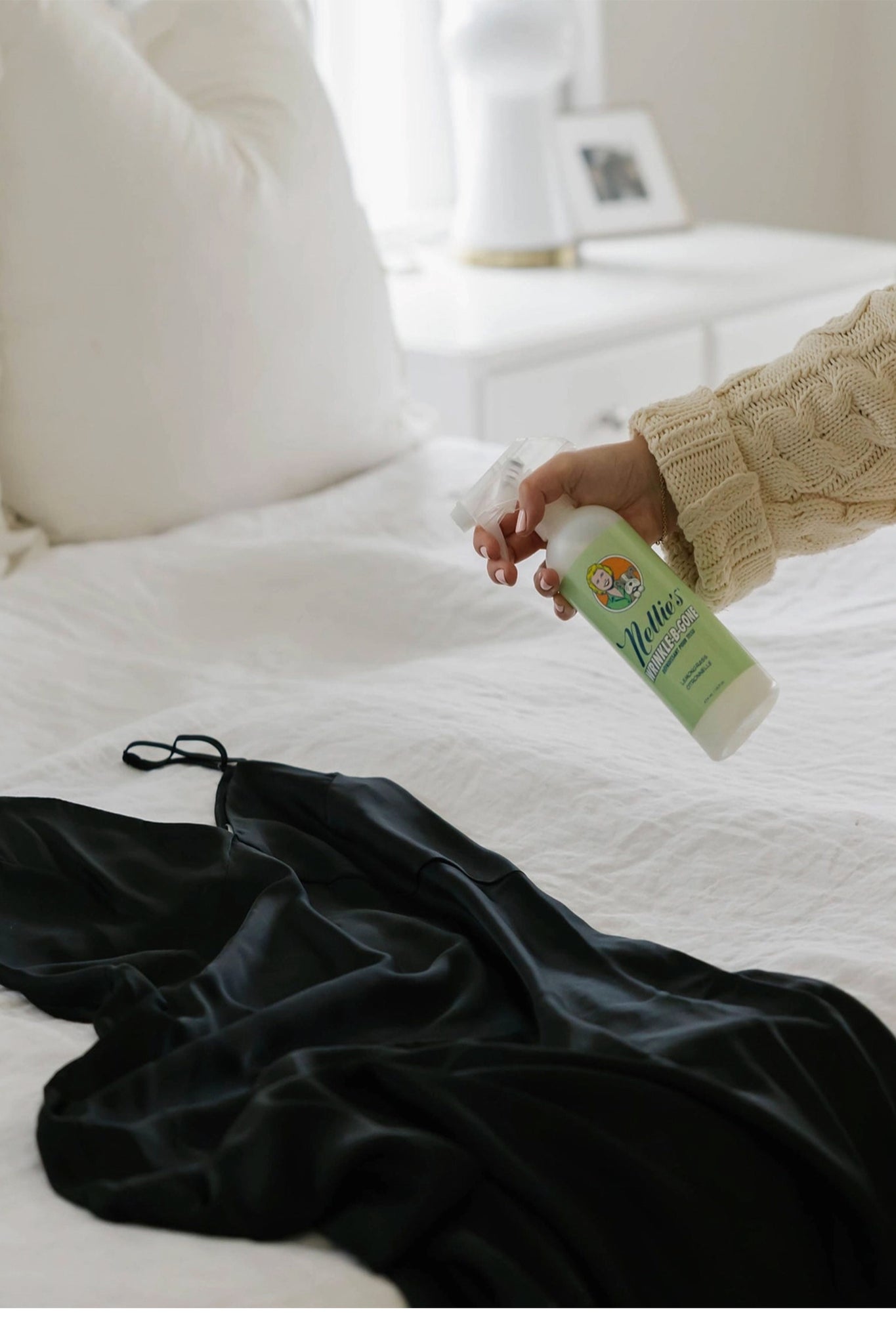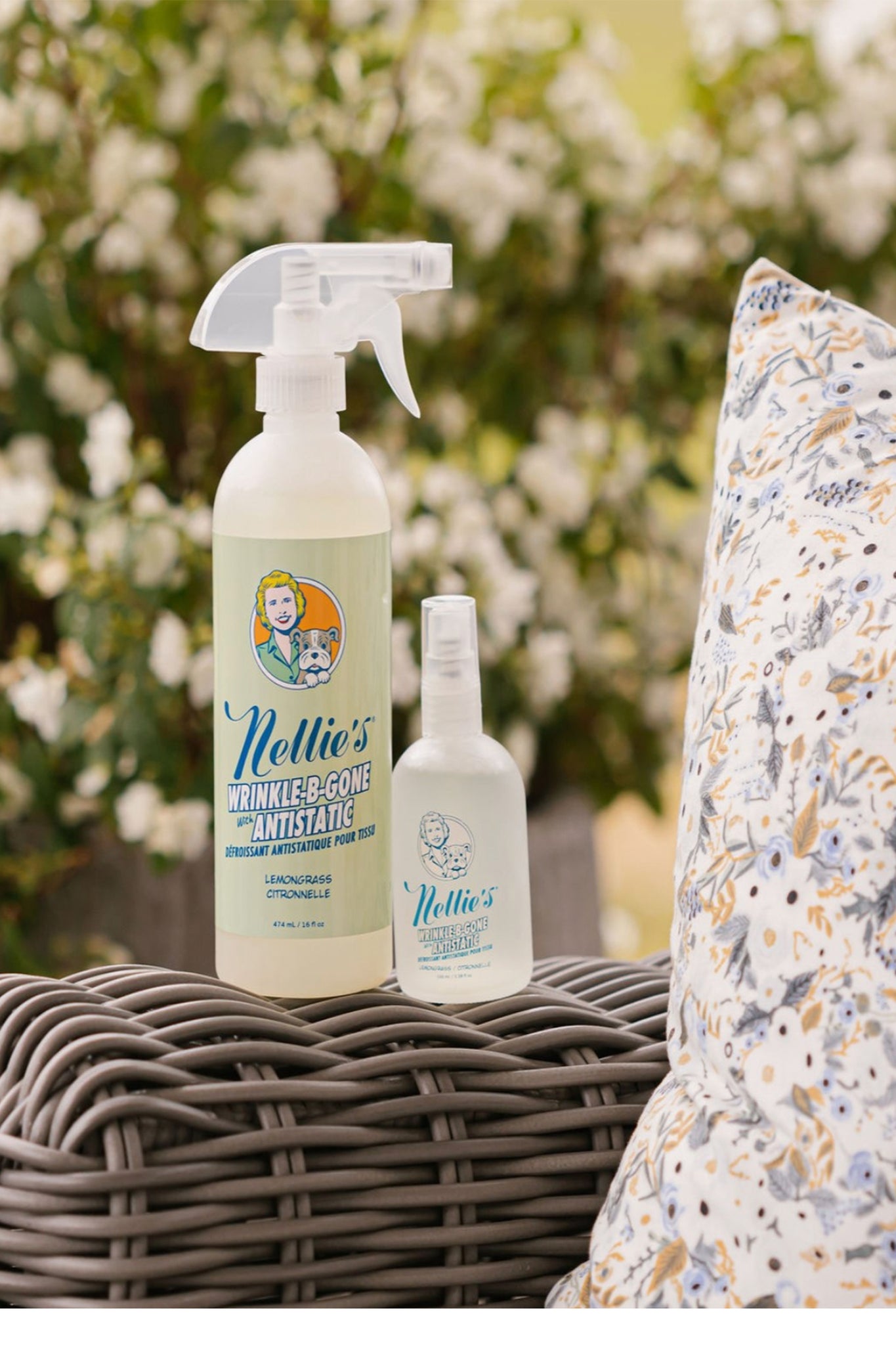 It does work wonders on wrinkled clothes! Our plant-based formula removes static, wrinkles, and freshens fabrics with Nellie’s signature lemongrass fragrance. Who even has time to iron? In as little as 5 minutes, you can have the same effect as an iron using the Wrinkle-B-Gone – really! Simply shake, spray, smooth, and snap!