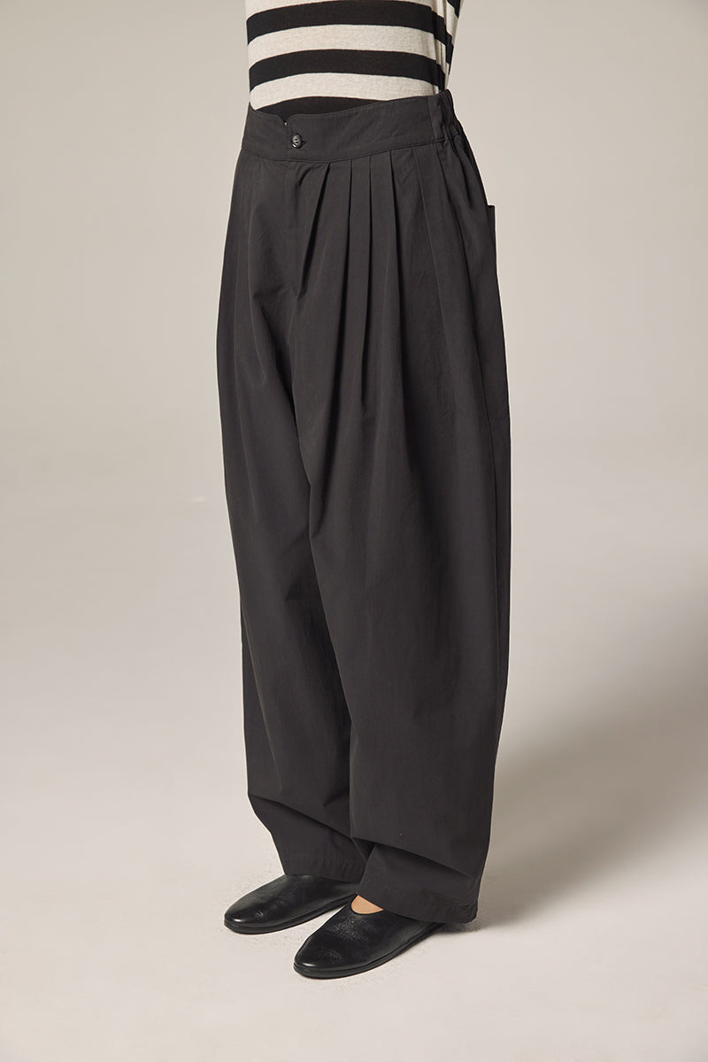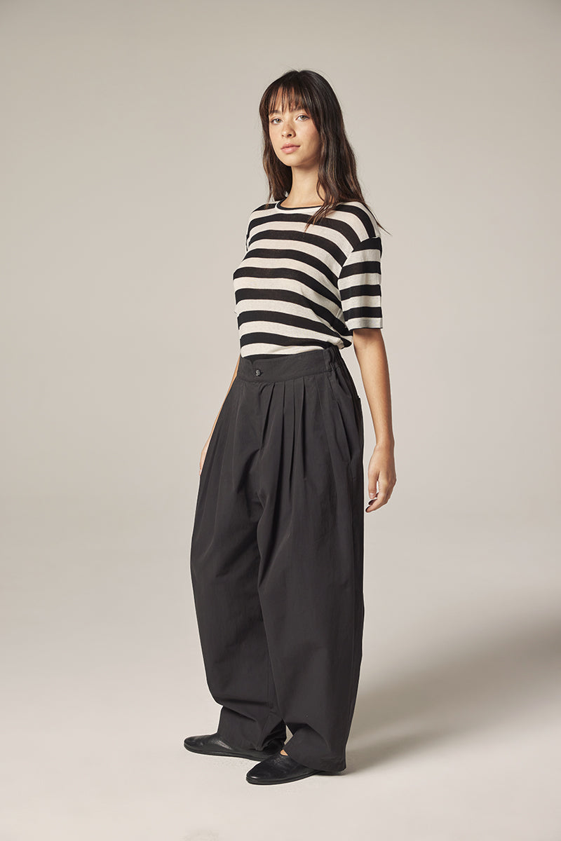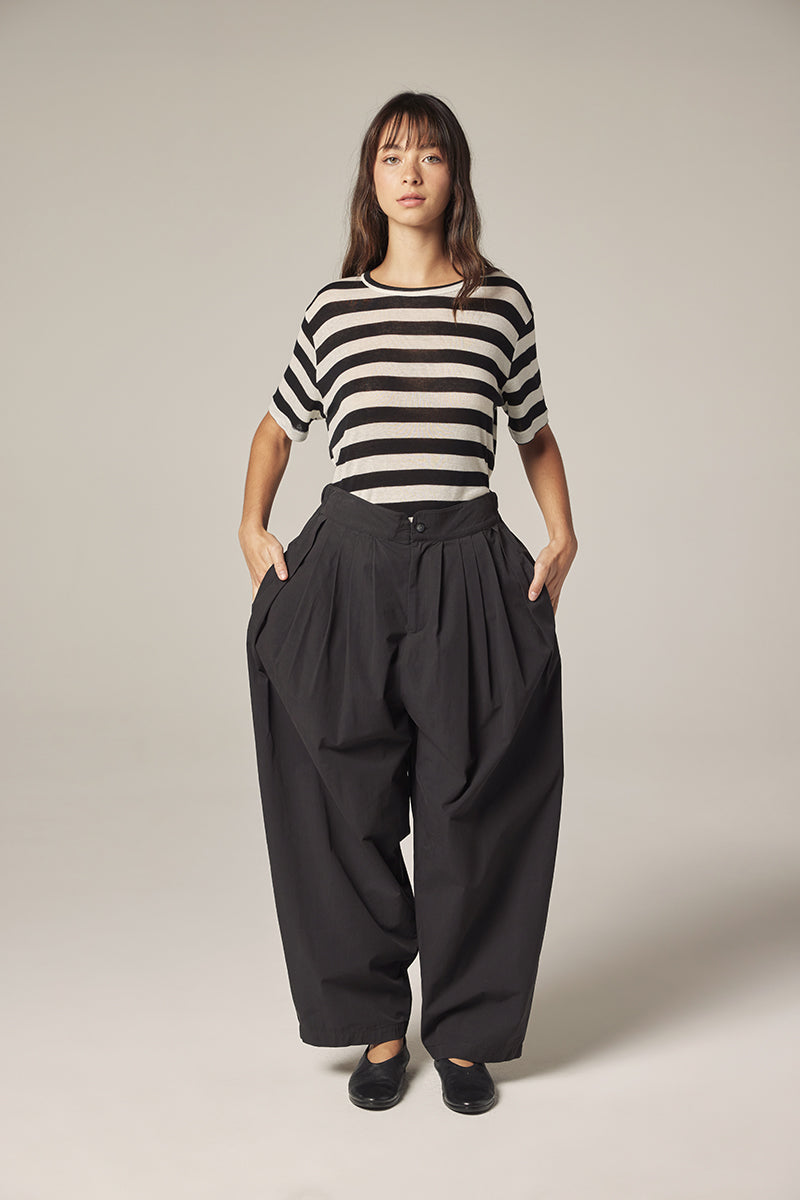 Cut from soft, breathable cotton, the silhouette is relaxed yet intentional—wide through the leg with gentle pleating at the front for natural movement and shape.