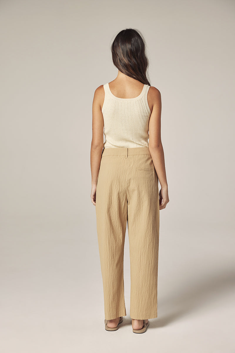 Relaxed tailoring meets everyday comfort in these elastic-back cotton pants. Designed with a softly structured silhouette, the front pleats create a refined shape while allowing ease of movement.