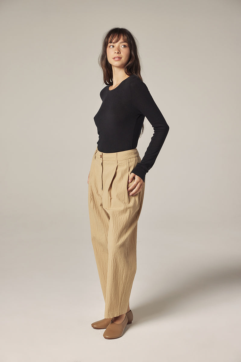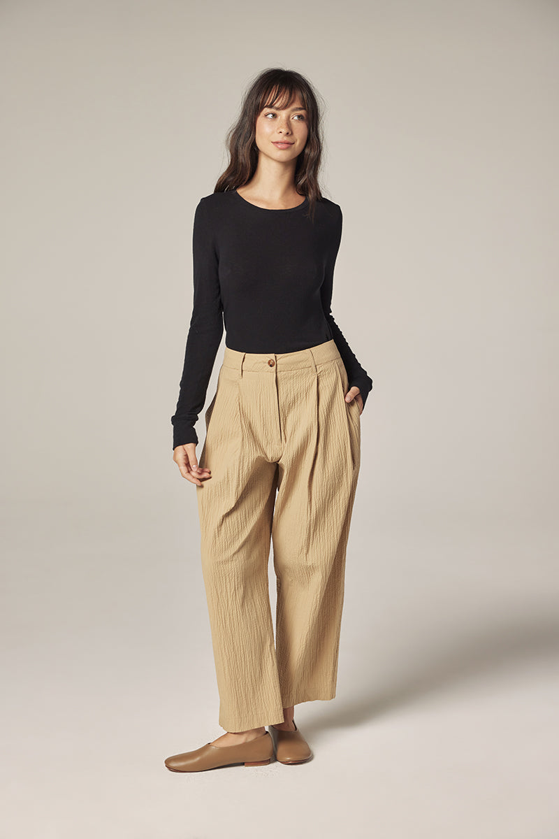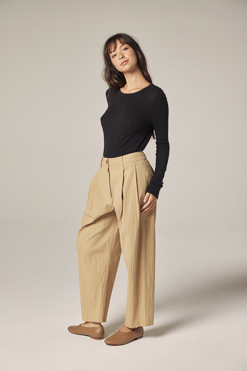 Crafted from lightweight textured cotton, the fabric feels breathable and natural against the skin, making these pants ideal for everyday wear across seasons.