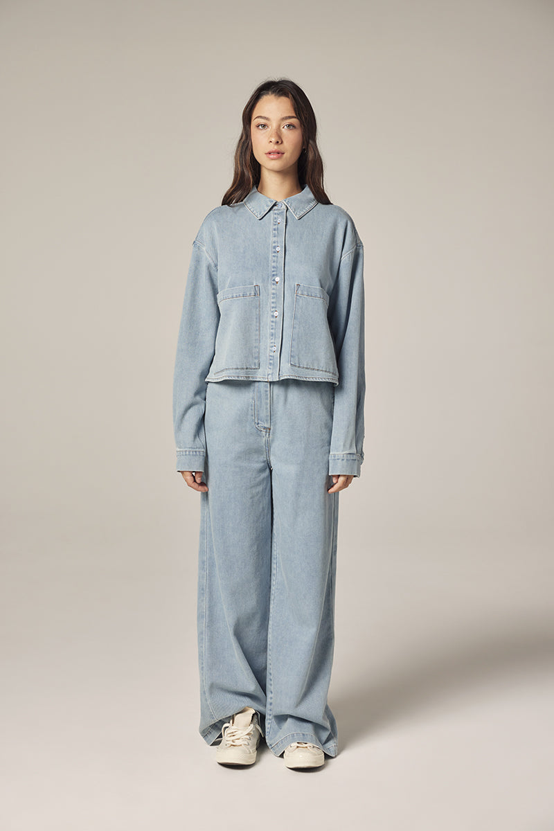 A modern take on everyday denim, the Short Denim Shirt is crafted from a soft cotton–TENCEL™ blend that feels breathable and gentle against the skin.