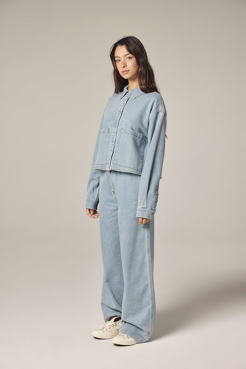 Wear it buttoned up as a shirt or open as a light layer, paired effortlessly with matching denim or your favorite summer separates.