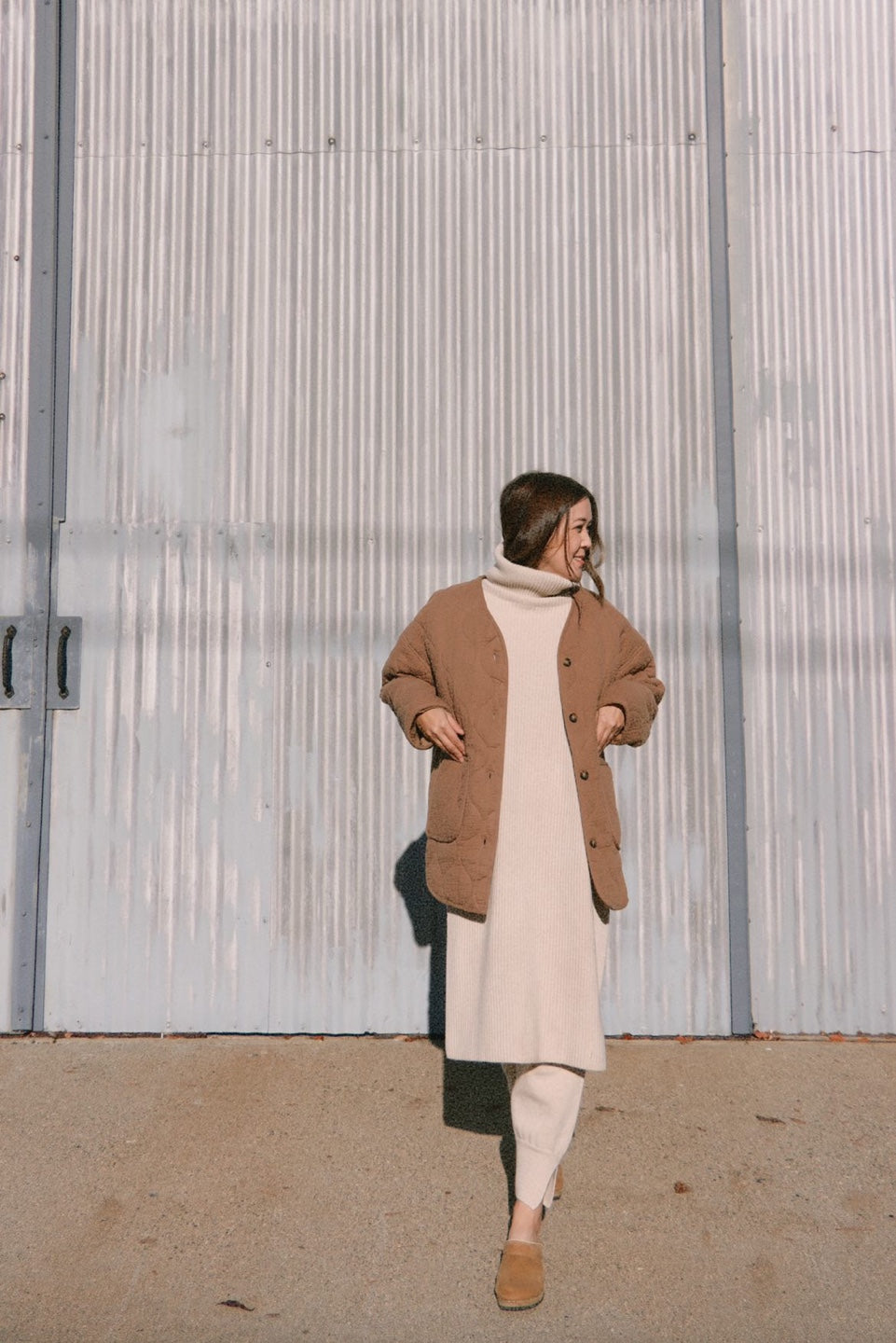 Designed with a classic turtleneck, it exudes elegance and sophistication, making it perfect for a stylish winter look.
